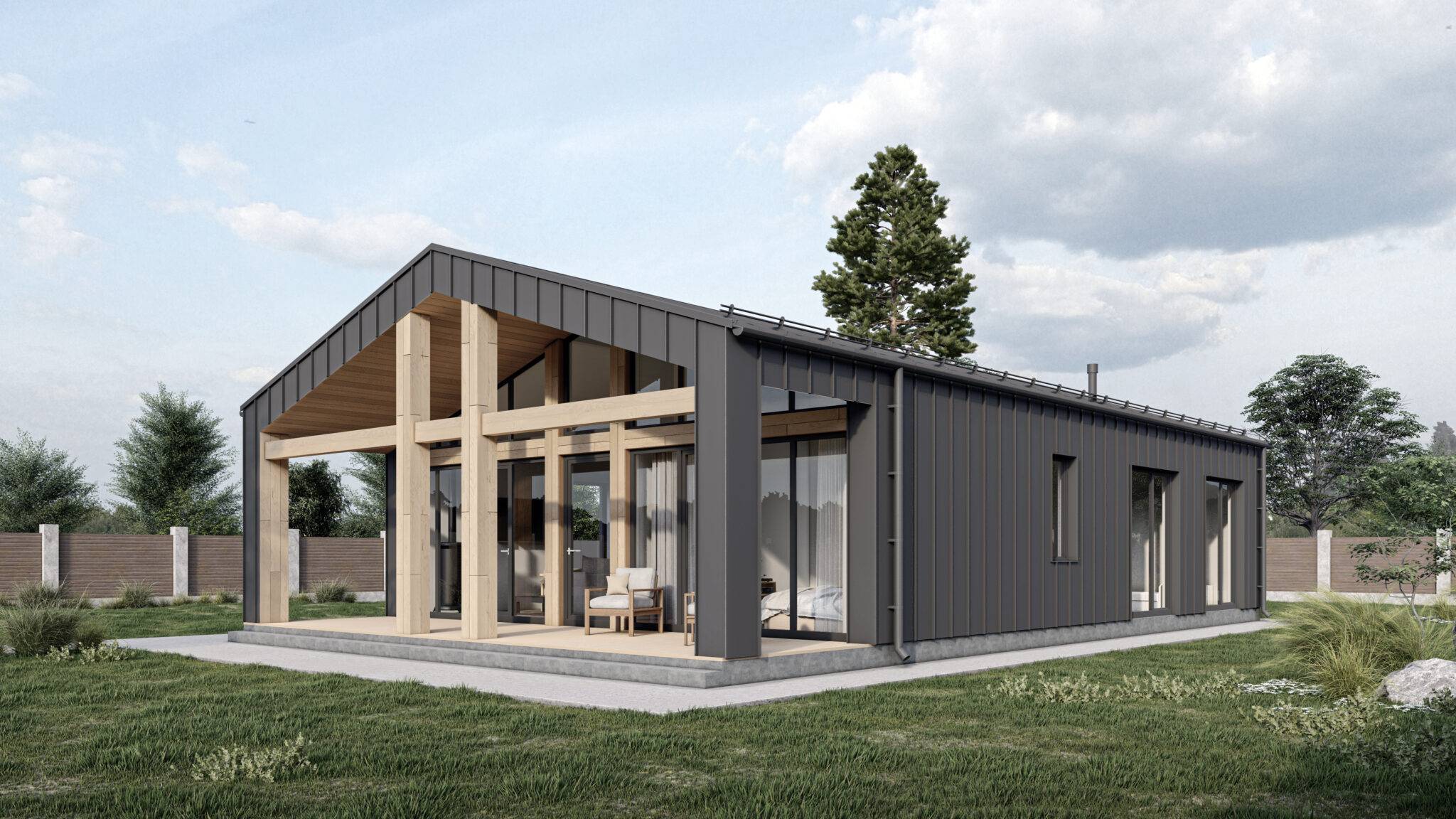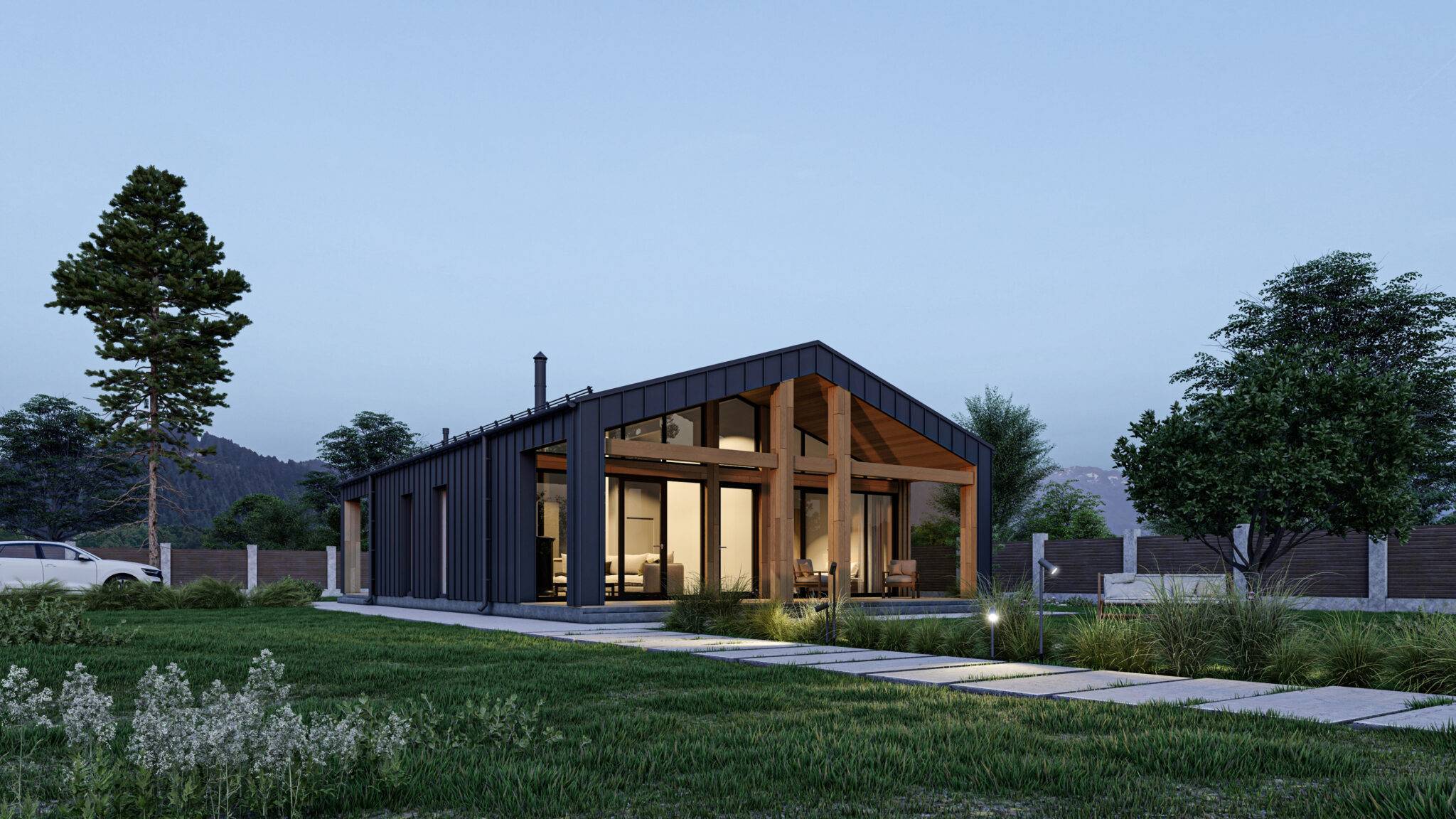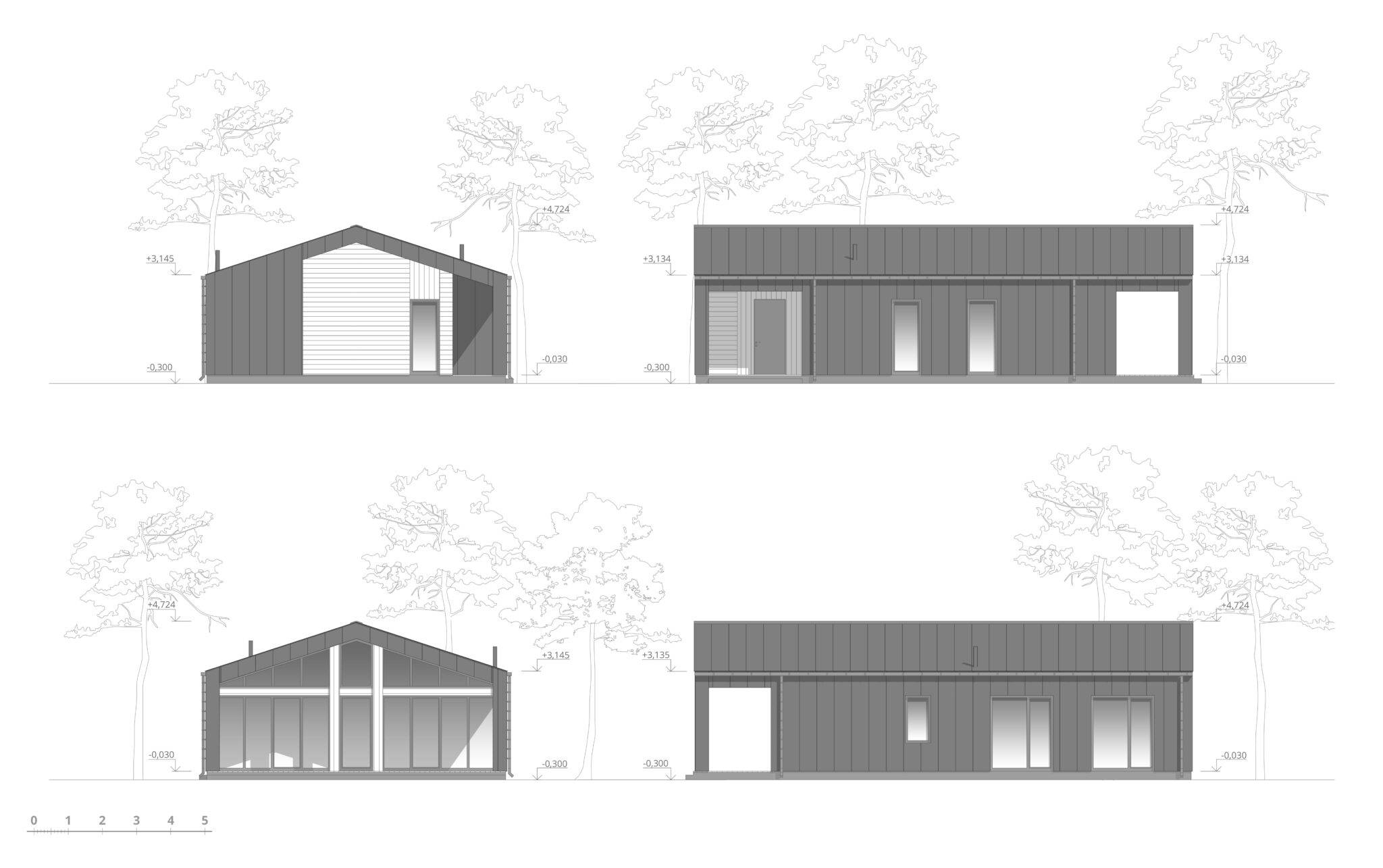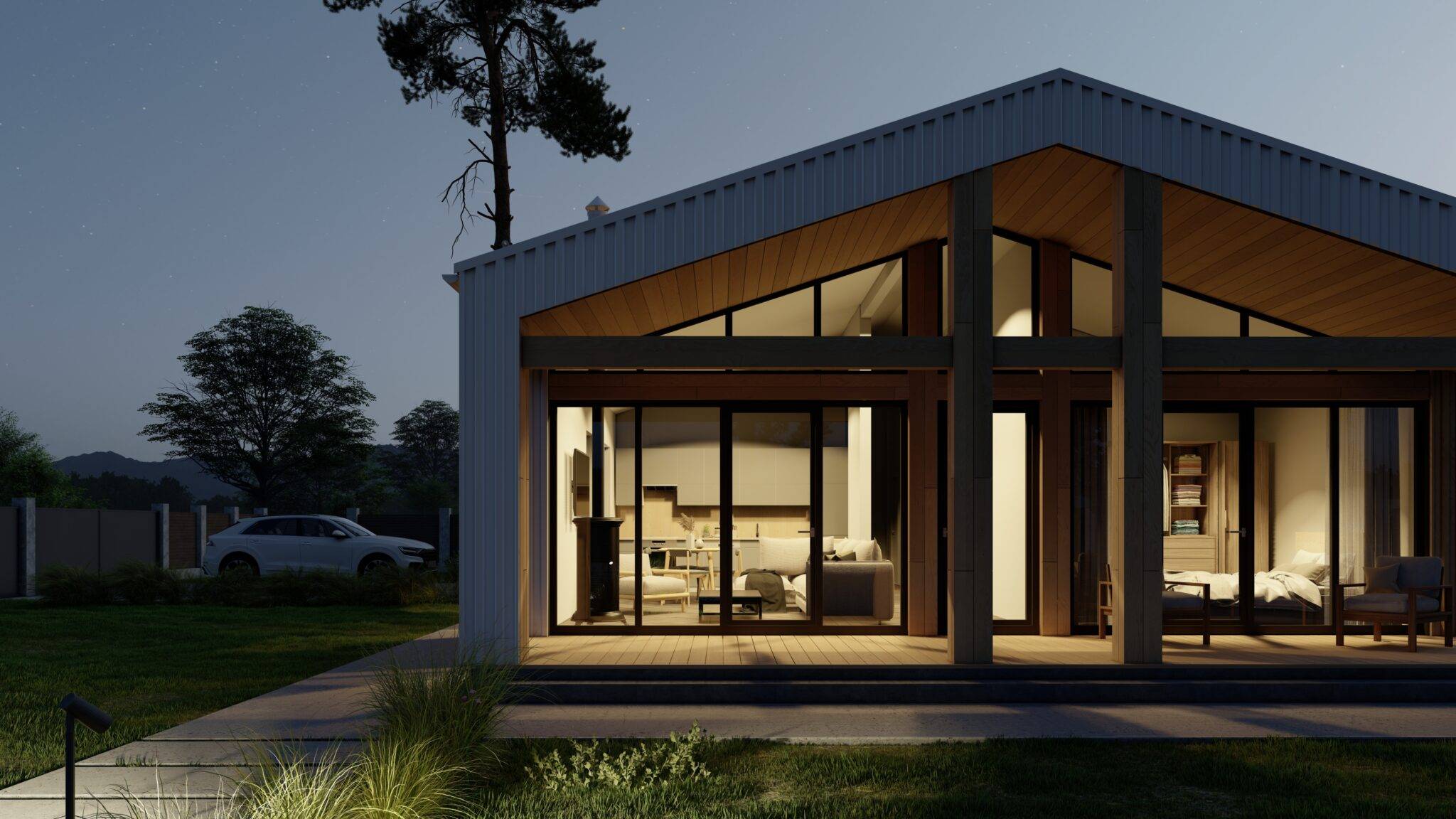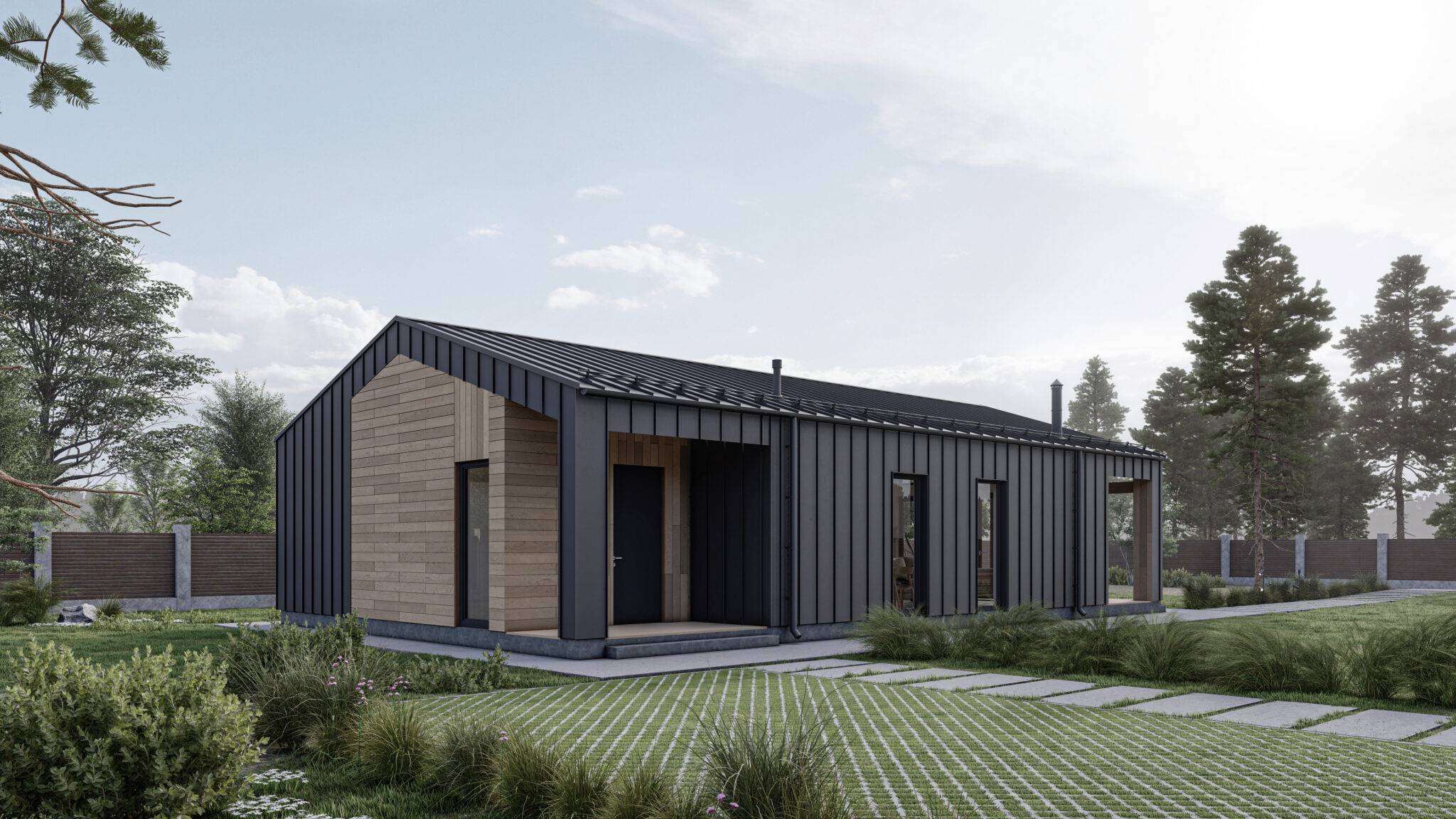 • load-bearing walls – SIP 160 mm (10 mm OSB-3, produced by EGGER, insulation by HIRSCH Porozell, Austria)
