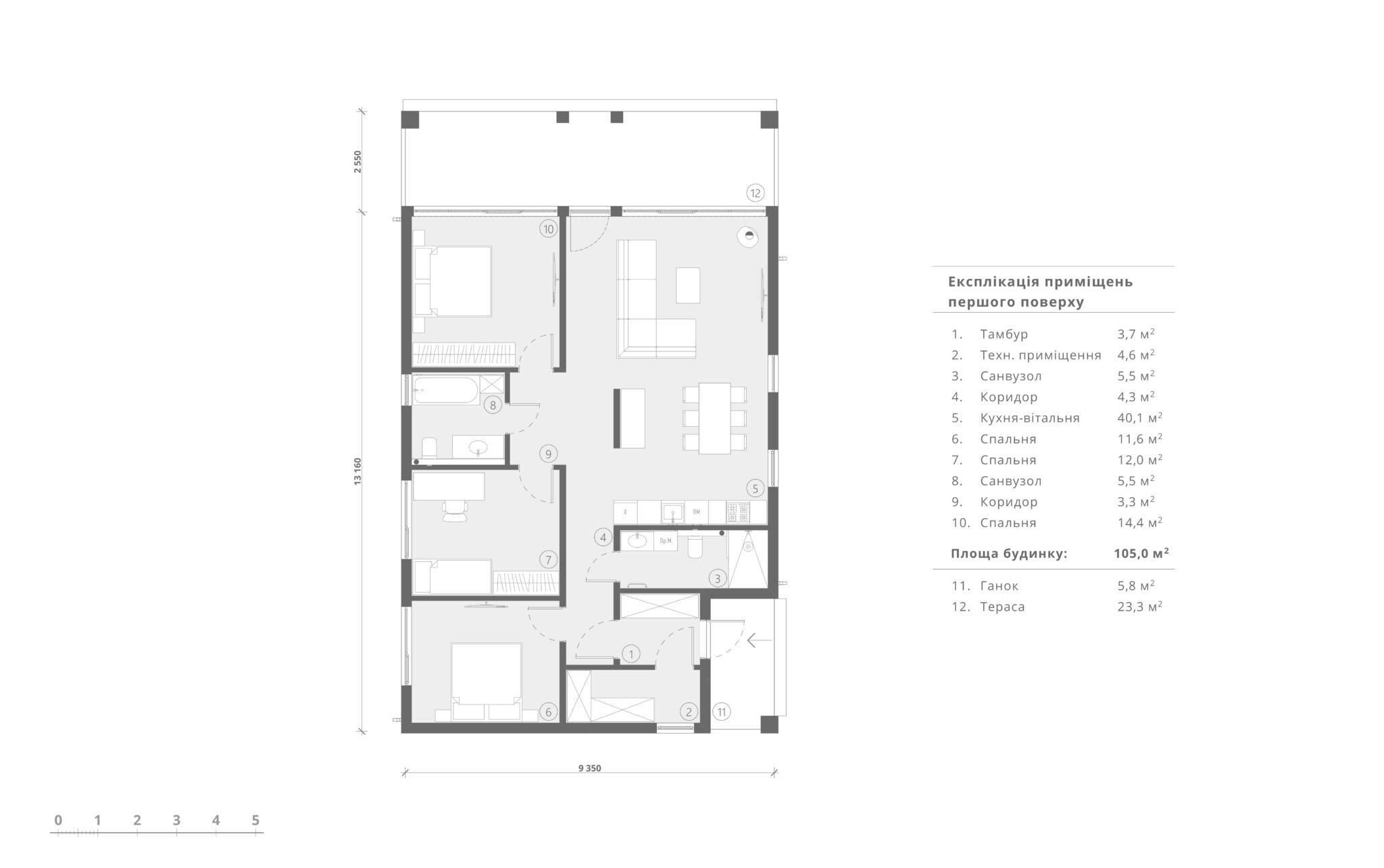 • Roof – SIP 220 mm (10 mm OSB-3, produced by EGGER, insulation by HIRSCH Porozell, Austria)